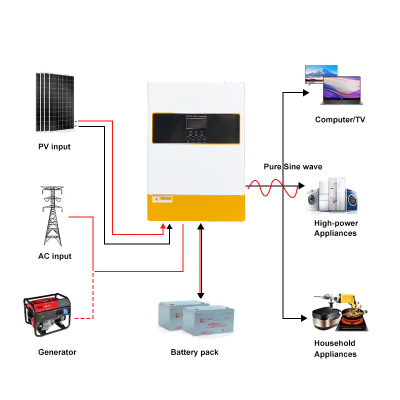 - Breed PV-invoerbereik: MPPT-bereik van 60~450VDC, maximaalOpencircuitspanning van 500VDC.